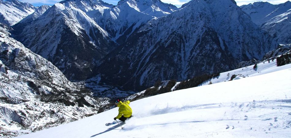 Les Deux Alpes is the resort of choice for numerous ski lovers from all over. With more than 400 hectares of marked pistes up to 3600 m in altitude and with countless trails for off-piste skiing, the famous resort in the Alpine area of the Oisans and the Massif des Écrins offers a whole range of fun and unique sport activities in the Alps. The dynamic and warm main area of Les Deux Alpes, located near the hotel, stretches out over two kilometres and is lined with shops, eateries and numerous other attractions.
