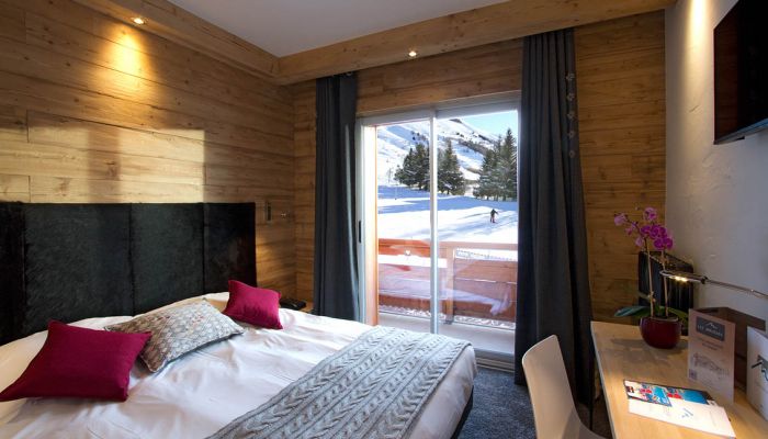 Bienvenue aux Mélèzes dans le décor raffiné et douillet de nos chambres orientées Sud, la plupart avec balcon, offrant une vue magnifique sur le Massif de la Muzelle. Toutes possèdent leur propre personnalité et de beaux espaces confortablement équipés invitant à la rêverie et la détente. Avec leurs plaids et duvets tout doux, leurs matières nobles (cuir, laine, tissu…), leurs coussins moelleux… les chambres sont des refuges de douceur au creux de la montagne.